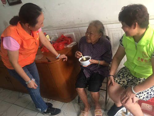 活动当天志愿者提早准备食材制作八宝粥,然后打包成一份份,社工和志愿者们分成四组,顶着烈日,把八宝粥送到每位长者的家中,在送餐过程中与长者聊着家常,了解长者身体情况,要注意预防中暑和居家安全。