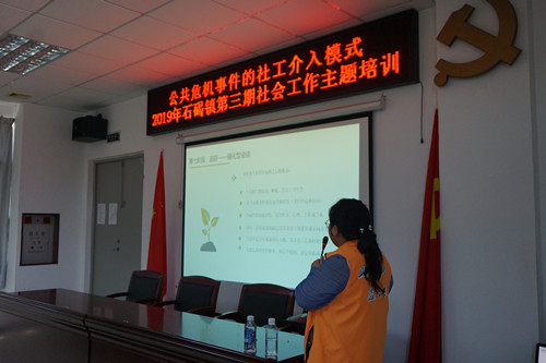 2019年8月28日周三,2019年石碣镇第三期社会工作主题培训在水南社区进行,由东莞市乐雅社会工作服务中心承接培训活动,乐雅机构见习督导覃雪丹针对石碣镇社会工作者,以“公共危机事件的社工介入”作为主题开展主题培训。