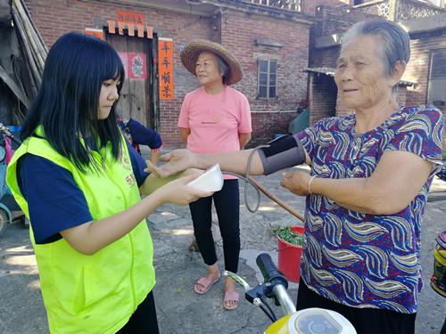 在活动中,社工积极询问社区长者是否需要量血压。社区里大部分的长者已经养成了定期测量血压的习惯,都会主动询问社工是否能为自己测量血压,保持对自身的血压情况有一定的了解度。有的长者会主动告知社工自己最近的饮食状况,希望社工能够给出一些建议。经过一个下午的穿街走巷,社工共为25名社区长者进行了血压测量服务。