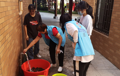 本次活动邀请了社区烹饪巧手珍姨参与到煮糖水的环节,在巧娘的指导下,青少年志愿者参与到清洗厨具、泡绿豆、洗海带、煮开水等工作,将近一个小时后一大锅热汤汤的消暑糖水就煮好了。当天下午,社工引导志愿者们一起将煮好的糖水逐一分装打包,一行人分为两支小队进行入户探访。顶着热辣的太阳,志愿者们走街串巷,没有一丝迟疑,只为了能够尽快让老人品尝到新鲜的糖水。每一位收到这份“夏日惊喜”老人们都以最美的笑容表达他们的开心和感谢。喝着甜甜的糖水,独居老人谭婆婆表示:“今天这么热还带糖水来给我喝,很有心,谢谢你们!”,工作人员还特意叮嘱老人们现在连续高温,尽量避免在正午这种时间段出行,以防中暑,外出做好防暑措施,多喝水。