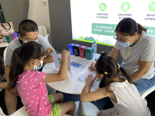 活动开始,社工介绍活动流程以及目的,并与亲子分享十种沟通小技巧,参与者都十分积极听讲。接着布置任务,亲子在垃圾分类馆游戏互动过程中积极运用学习称赞的技巧。亲子了解垃圾产生的“来龙去脉”,并学会了分类。在亲子互动过程中,学会称赞对方的能力,正向温柔耐心交流,不但让亲子更有动力学习垃圾分类,而且感受到称赞带来的身心的愉悦,加深亲子间的互相认识和了解。