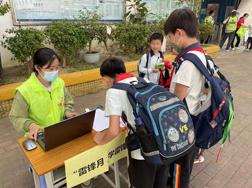 三月是学习雷锋月,为了大力弘扬雷锋精神,通过社区与学校联动,推动石碣镇青少年群体志愿服务力量。有部分学生开始了解志愿服务,但不知道如何注册及操作,在2023年3月10日下午,东莞市乐雅社会工作服务中心驻水南社区综合服务中心社工联合石碣志愿者协会在新民学校开展“雷锋月,学雷锋”学生志愿服务招募宣传活动,通过“少年有志·愿行成长”项目指引在校学生注册成为志愿者,介绍石碣镇的志愿服务。