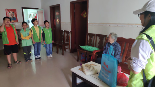上午8:30,社工们就整理好探访物资,提着沉甸甸的物资准备出发去土桥啦。9:00,社工与护工阿姨以及清溪第一小学的小志愿者们在土桥村委会合。社工对小志愿者们进行了简单的认识和培训后,在护工阿姨的引路下,就开始了一系列的探访活动。