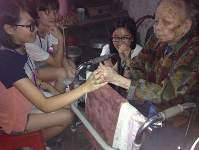本次共有4位大白志愿者参加,这四位大白志愿者们已经是第二次来到吴婆婆家了,刚到吴婆婆家时,吴婆婆刚刚洗完澡,看起来精神很好。吴婆婆一见到志愿者们,就笑得很欢,接着用手势示意志愿者们自己找凳子坐下聊天。志愿者关切地问候婆婆的健康,与婆婆聊家常,与婆婆一起吃龙眼,场面十分温馨。志愿者们看到婆婆门口有杂草,便自发性为婆婆除草。婆婆虽然不能用正常的语速表达自己的情绪,但一直竖着大拇指,表示对志愿者的赞赏和自己内心的欣慰。婆婆不断用动作表达希望志愿者们读书成绩棒,让学生志愿者笑的合不拢嘴。