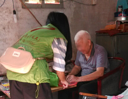 不看到当时的场景,你永远无法了解“三无”老人的辛酸。中秋节,一个阖家团圆的日子,却有一部分老人感受不到这样的喜悦。而在麻一麻三村的居家养老服务对象中,就有10多户老人是这样的情况。所以,9月27日上午,即中秋节当天,乐雅驻麻涌居家养老社工组织了本土爱心志愿者对这部分三无老人进行落户探访,与他们一起共度佳节。