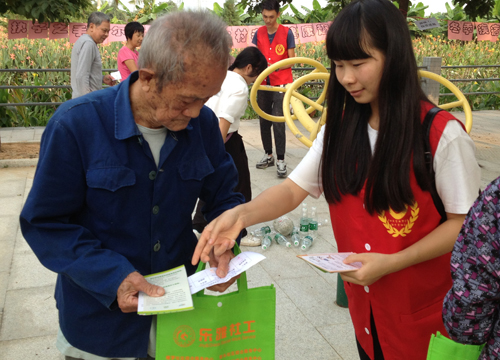 关注老人的身体健康,社工义工齐行动。2015年11月5日下午,东太居家养老社工组织中大新华学院志愿者开展了老年人冬季疾病预防知识宣传暨量血压活动,活动过程中派发知识小册100多份,吸引了30多位老年人前来参加活动。