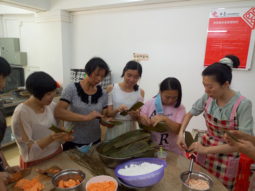 一只青粽,一缕浓情,6月7日下午水南社综厨房充满了粽叶的飘香和人们的笑声,粽飘香,情更浓,端午节是我国的传统节日。吃粽子是庆祝端午的重要内容之一,但包粽子这门手艺却是被越来越少的人了解和掌握。为弘扬中华民族的优秀文化,过一个不一样的端午节,水南社综在端午节来临之际举办了裹粽子活动,石碣康就中心组织学员志愿者参与其中,让学员裹粽子感受端午节的气氛。