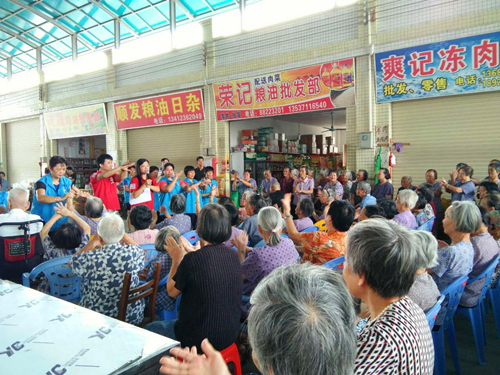 重阳节”是中华民族传统的敬老节日,为进一步营造社区尊老敬老社会氛围,增强全社会老龄意识和敬老意识,乐雅驻麻涌漳澎社工积极整合社区资源,在村委的大力支持下联合社区卫生服务站和民间发廊于9月28日下午开展了“敬老月”宣传活动,活动吸引了200多位老人的参与。
