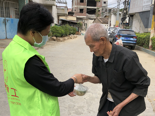 中午社工、义工就开始了忙碌,义工提议饺子需要有个清淡的汤底,让长者吃饺子寓意“招财进宝”。在煲饺子的过程中,社工还向义工解说入户探访的注意事项。等美味的饺子煲好了,义工迅速的打包好饺子,义工为长者送上一碗暖暖的饺子,提前祝贺长者新春快乐场面其乐融融。