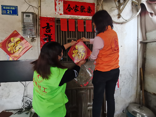 喜迎新春,过大年,家家户户贴春联。春联是中华民族的传统,是象征吉祥、表达人们向往美好生活的风俗习惯。为弘扬传统文化,让独居老人感受到节日的气氛,乐雅社工驻常平居家养老于2022年1月28日在黄泥塘村开展“迎新春,送祝福”长者新春对联赠送活动,为村中12名独居老人张贴春联,送上新年的祝福,增添节日气氛。